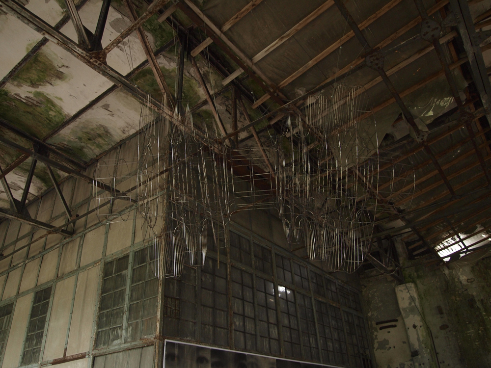 この大きな作品がどうしてこの場所に展示てきたかというと、大きな円柱の形にした部品を運び込み、あの場で、タービンの形に溶接したのです。そのダイナミックさと細やかな技を発電所の歴史と共に感じられる作品になっています。